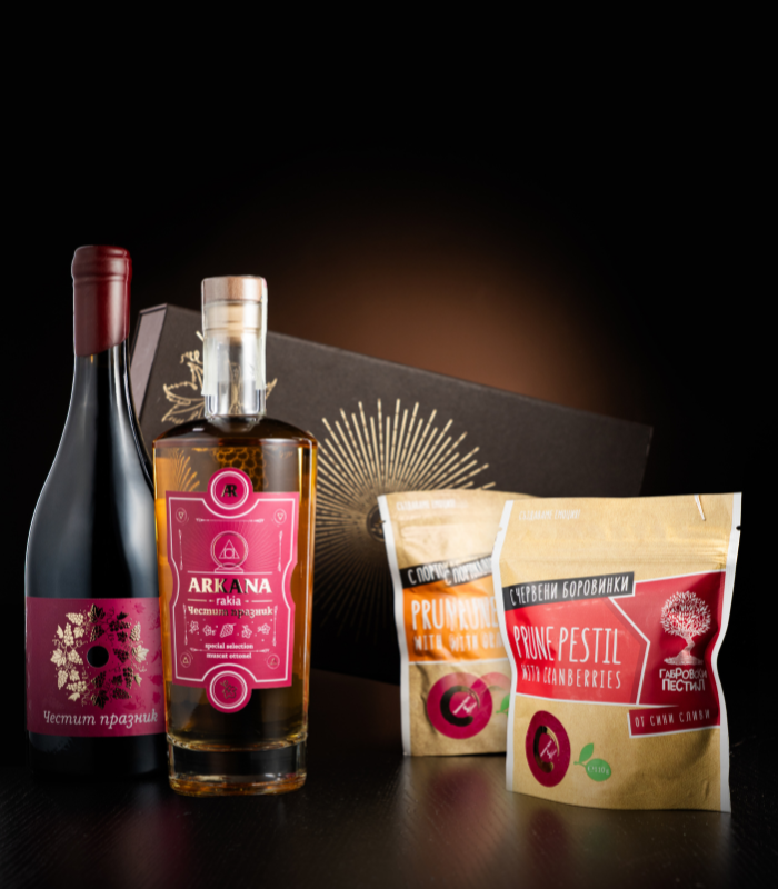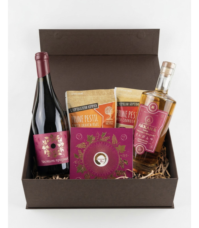 Това е подарък с характер и изискано присъствие, подходящ както за личен жест, така и за бизнес повод. Комбинацията между вино, ракия и внимателно подбрани сладки акценти създава усещане за завършеност, топлина и отношение. Подаръчен комплект, който не просто впечатлява с визия, а оставя усещане за вкус, стил и специално отношение.